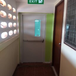 – ทางเดินส่วนกลาง (corridor) เชื่อมบันไดประเภท ประตูเหล็กกันไฟ (Fire Rated Steel Door) บานเดี่ยวหรือบานคู่ วัสดุ – เหล็กแผ่นพับขึ้นรูป