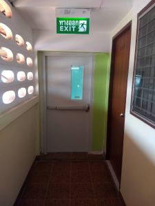 เปิดออกด้านนอก ของอาคาร หรือทางหนีภัยเท่านั้น